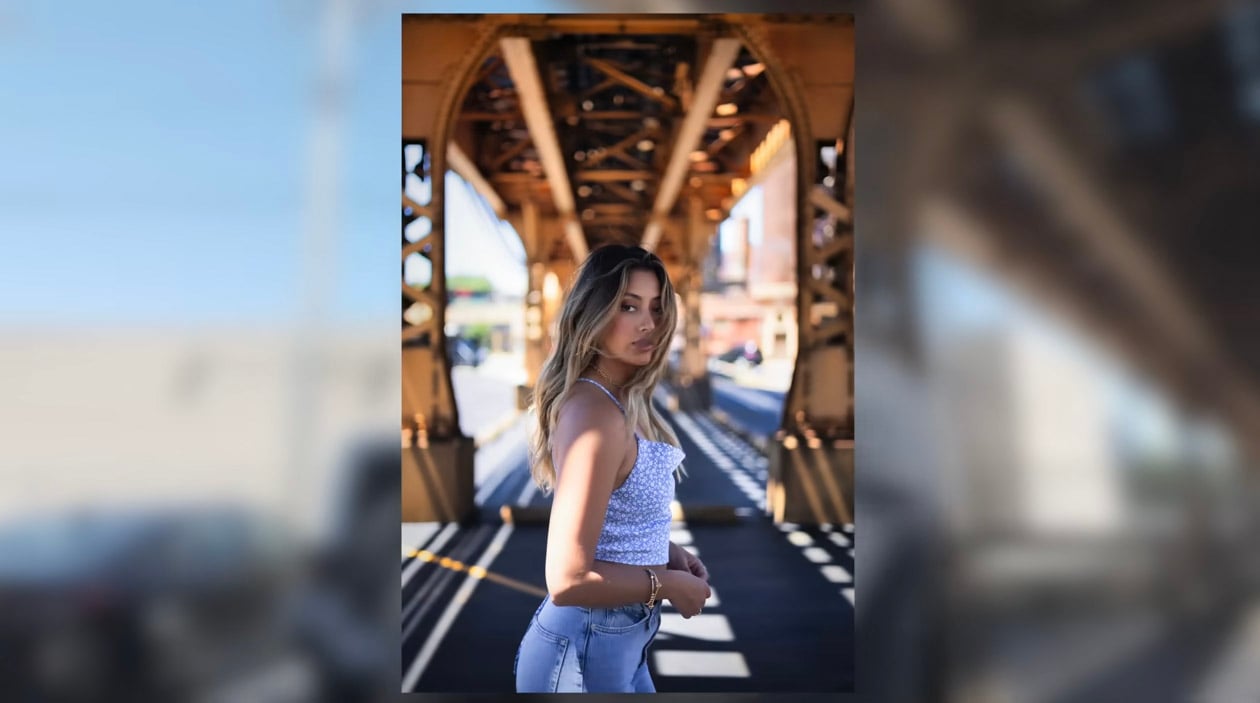 As you can see in Manny’s shot above, the symmetry of the elevated train tracks above his shooting position creates a nice frame within a frame around the model. At the same time, the structure of the train tracks creates leading lines that provide depth to this example of portrait photography.