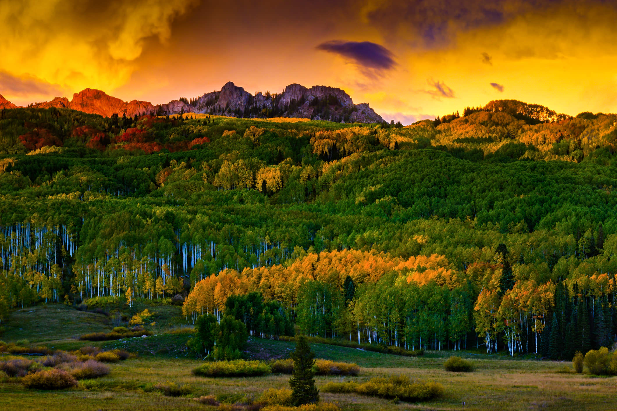Many DSLRs also offer a “Kelvin” setting, which allows you to enter the color temperature of the lighting in degrees K. It’s also worth noting that White Balance settings can be used to deliberately create color shifts when a particular effect is desired. For example, when taking a photo of a sunset, like the example image of the mountains in the autumn included here, you can use the shade setting to purposefully warm up the already warm colors of the sunset.