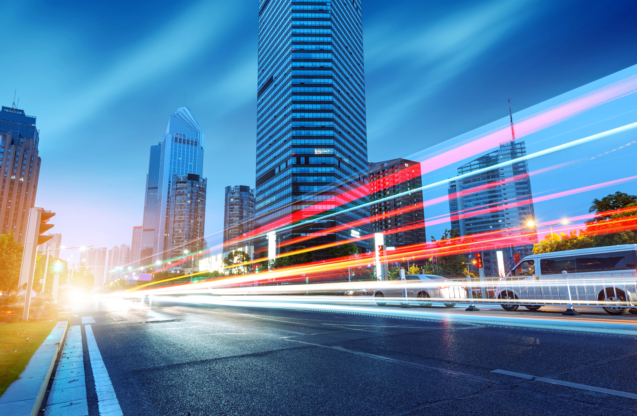 For example, in the primary image above, the photographer selected a shutter speed that was slow enough to allow for the creation of light trails in the image. The aperture selected by the camera allowed for a well-exposed image as well. Note how each element in the photo – from the cars in the foreground to the buildings in the background, is nicely exposed with no areas that are too dark or too bright.