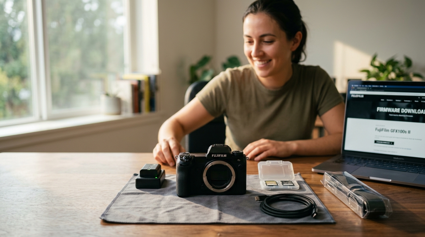 Cameras often sit in a warehouse for six months or longer before reaching you. Therefore, the firmware shipped on the body is rarely the current version. Manufacturers push updates for autofocus improvements, bug fixes, and new feature rollouts. Skip this step and you shoot on old code while better code sits ready on the manufacturer website.